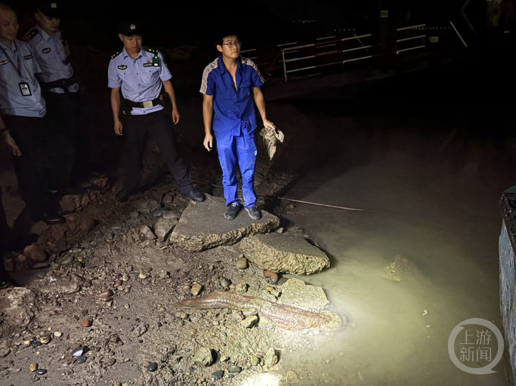 事发当晚,长江航运公安局万州分局忠县派出所民警和农业部门工作人员到达现场时,发现这条娃娃鱼活动迟缓,缺乏活力,便立即开展救助。市民杜先生说:“晚上9点多在江边散步时,看到有条娃娃鱼一动不动,担心它受伤了,我就立即报了警。”